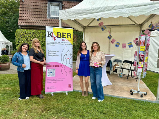 Am 31. August 2025 lud Oberbürgermeister Thomas Westphal bereits zum vierten Mal zum Sommerempfang auf Schloss Bodelschwingh ein. In diesem festlichen Rahmen durfte die Beratungsstelle KOBER ihr Projekt „Café Come In“ vorstellen und für Unterstützung werben.